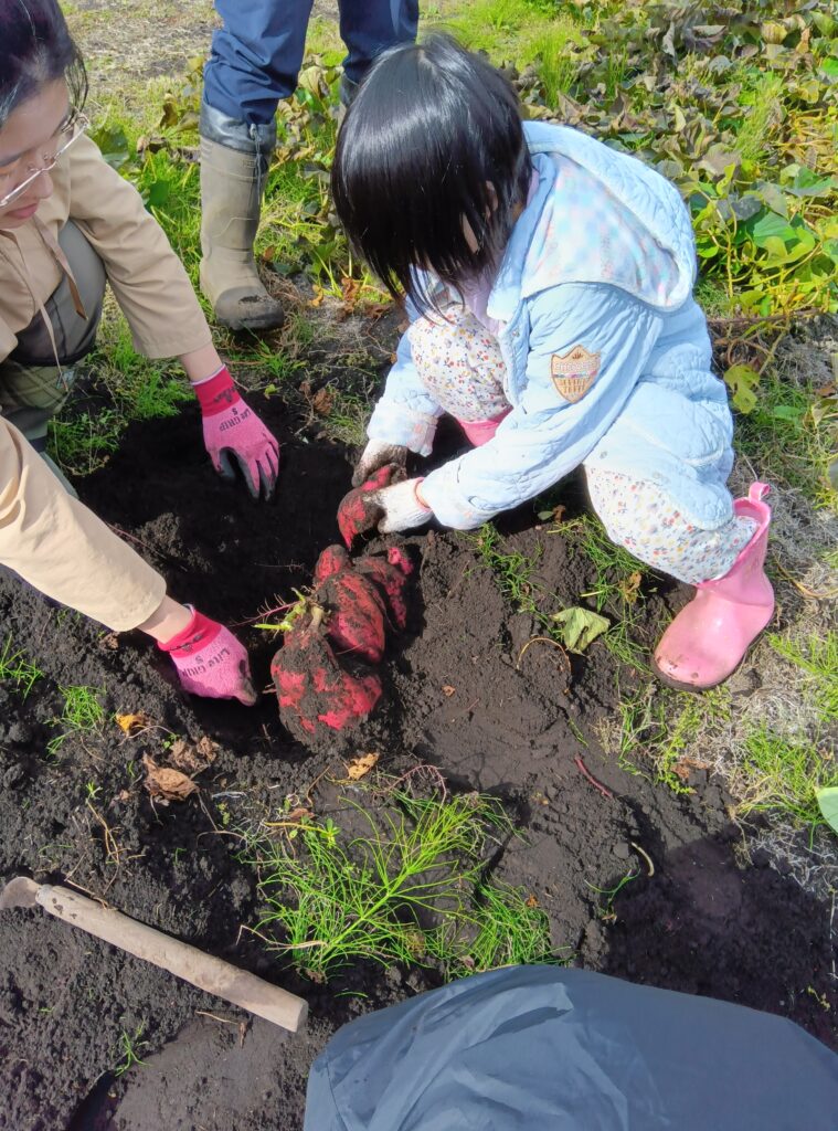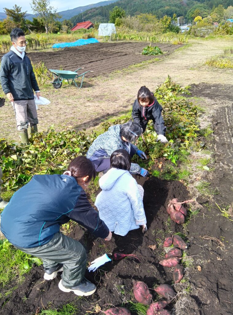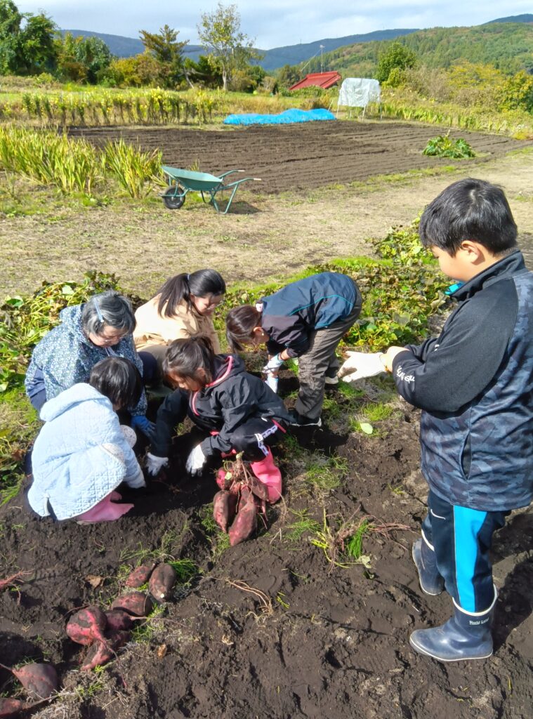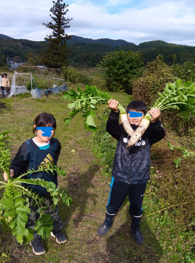 25日(土)にひろま~れの子どもたちは、町内の城内地区の山下農園で、さつまいもや大根、ミニトマトの収穫作業をしてきました。自分の顔以上に大きく育ったさつまいもに大歓声をあげながら土を掘り続けていました。収穫した大根やミニトマトはさっそくこの日の昼食でおいしくいただき、しっかり完食しました。成長期の子どもにとって『五感(視覚・嗅覚・触覚・聴覚・味覚)』を刺激する野外活動は、子どもの脳を健全に発達させてくれるとっても大事な活動と言われています。今日の山下農園での体験は「収穫」だけでなく「脳の成長」にも役立った良い時間となりました。山下農園の皆さんには、7月26日のじゃがいも収穫から引き続いてお世話をいただきました。ありがとうございました!
